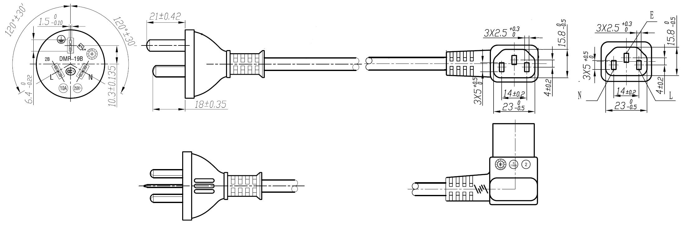 The 196-C5 is a power cord used in China with 3-prong plug, RVV3x0.75mm to the IEC 60320-C5 connector, is rated at 2.5A/250V and carries the CCC Approval. This power Cord is for Class I Applications and can connect with any device using the IEC-60320-C6 Inlet.