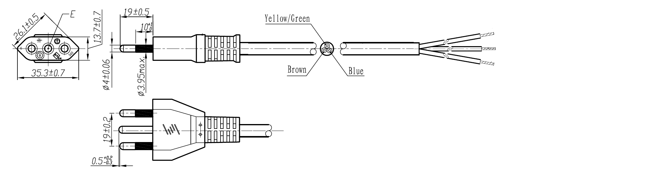 The 364-02 is a power cord used in Italy with 3-prong plug, H05VVF3G1.0mm to ROJ and strip, is rated at 10A/250V and carries the IMQ Approval. This power Cord is for Class I Applications.